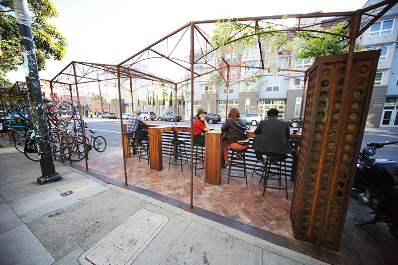 自転車屋をリノベーションしたワイルド感があふれたカフェ。