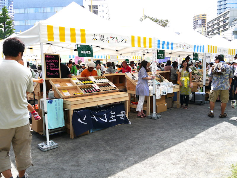 勝どきで行われた『太陽のマルシェ』の第1回。日本最大級の都市型マルシェと銘打たれています。感心したのは統一感。テントもディスプレイも統一されていて、素敵でした。