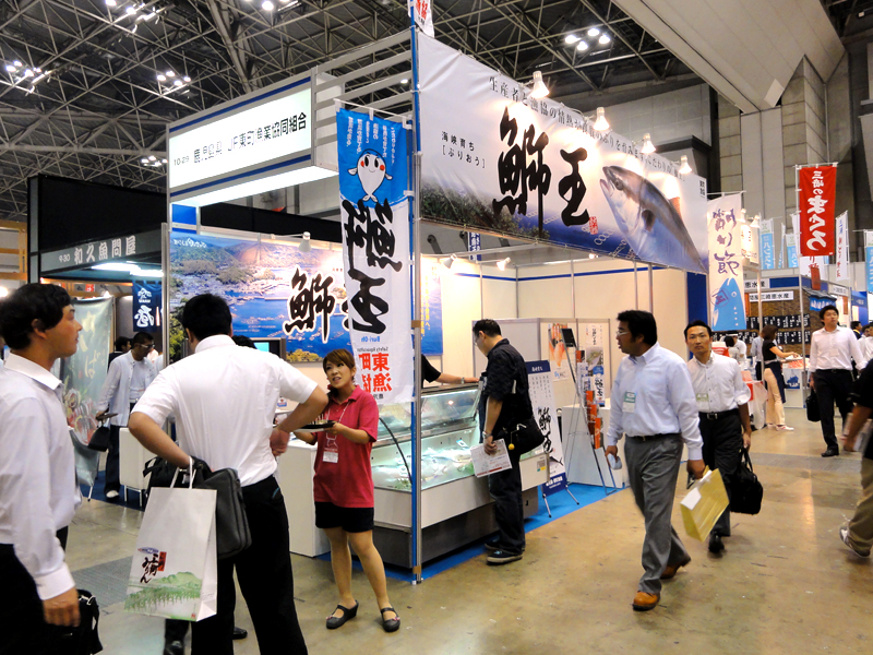 8月18日、ビッグサイトで開催された居酒屋産業展を初見学。 シーフードショーよりも入場者はずっと少ないのですが、なにせ出店がカラフル。 畜産、農産、水産、デザート、そしてお酒類。 居酒屋向けに各社アイデアを駆使した展開が興味深い展示会です。 東町漁協も好位置に目立ったブースで参加。少数精鋭でがんばってました。 その他には飲食店向けITシステムの出展が数多く。