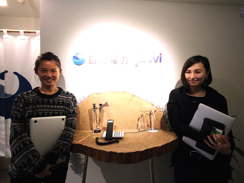 新オフィスになった自然電力。なんとワンフロアで100坪。以前の3倍の広さになったそうです。ナチュラルにデザインされたオフィスですが、オフィスだけではなく、スタッフの方たちもとってもナチュラルな雰囲気で、自然電力の新しさを感じました。