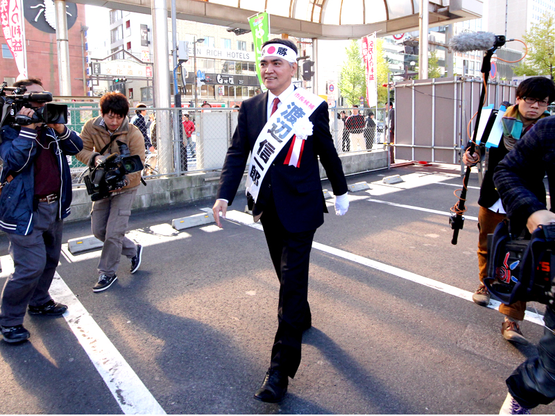 渡辺信一郎鹿児島市長選候補、出陣式での1コマ。あまりに似てたので。この時に応援スピーチをした、向原祥隆さんと岩崎芳太郎さんのお二人の話に、とても感動しました。主義主張は真逆だけど、どちらも信念の人。鹿児島県や鹿児島市という、大きな既得権益に立ち向かう人は、強い信念の持ち主なんだなと認識させられました。